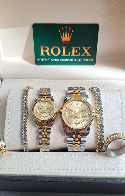 ست ساعت رولکس استیل زنانه و مردانه پک کامل دستبند کارتیر و حلقه کارتیر استیل ارسال رایگان گارانتی دارد