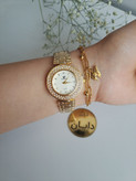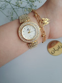 ساعت نگین دار زیبای طلایی زنانه مجلسی دستبند استیل ۲ لاین ارسال رایگان