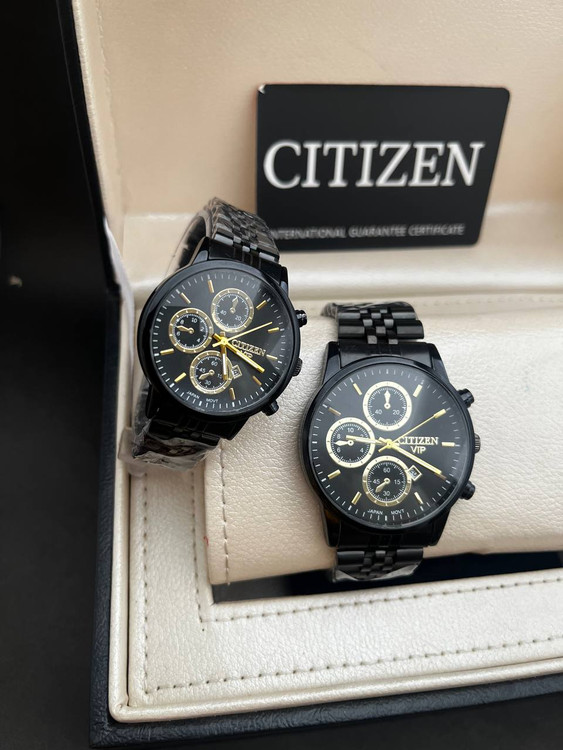 ساعت مچی‌‌ ست مشکی ست سیتیزن vip زنانه و مردانه ضد اب گارانتی ارسال رایگان کیفیت عالی استیل روز مرد هدیه تولد قسطی