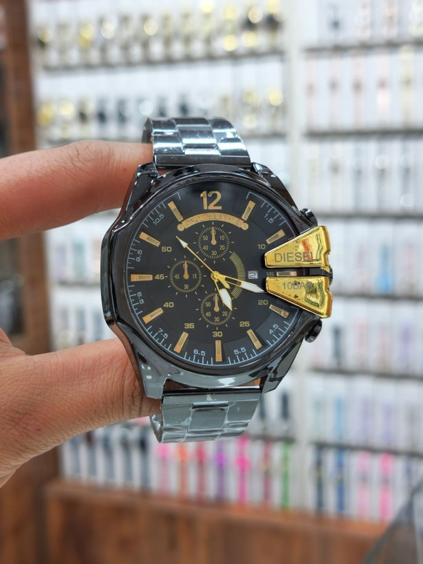 ساعت دیزل شاخدار رنگ ثابت مردانه مشابه اصلی مشکی تقویم دار گارانتی ارسال رایگان ضد اب