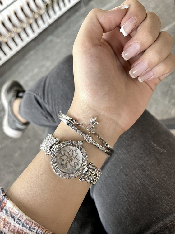 ساعت نقره ای نگین دار jiali زنانه شیک مجلسی ارسال رایگان کادو خاص