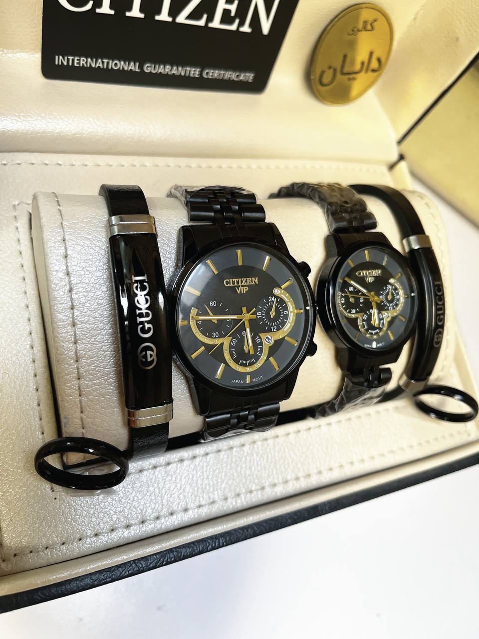 ساعت لوکس مشکی سیتیزن زنانه و مردانه دستبند و حلقه گارانتی رنگ ثابت ارسال رایگان‌ هدیه تولدهدیه شیک