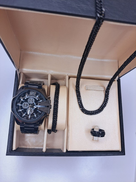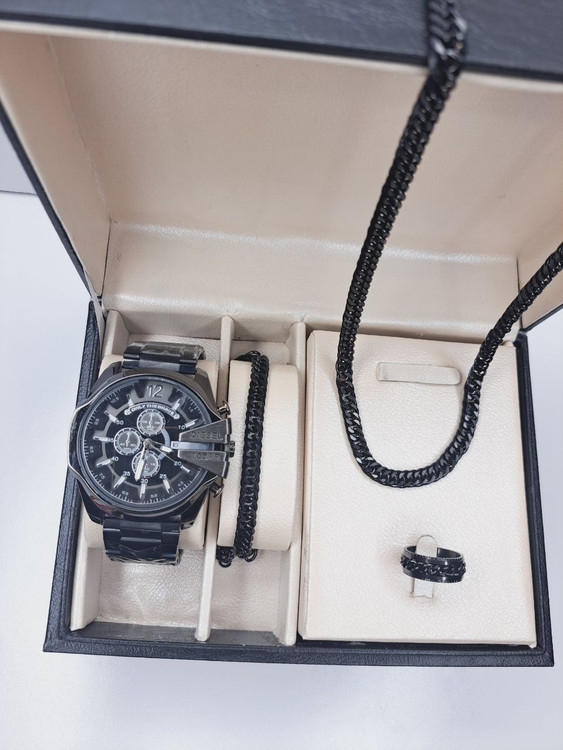 ست مردانه دیزل مشکی ساعت مچی شاخدار دستبند و گردنبند استیل خرید با قیمت عالی و