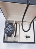 ست مردانه ساعت دیزل شاخدار مشکی گردنبند و دستبند استیل حلقه رینگ ساده ارسال رایگان