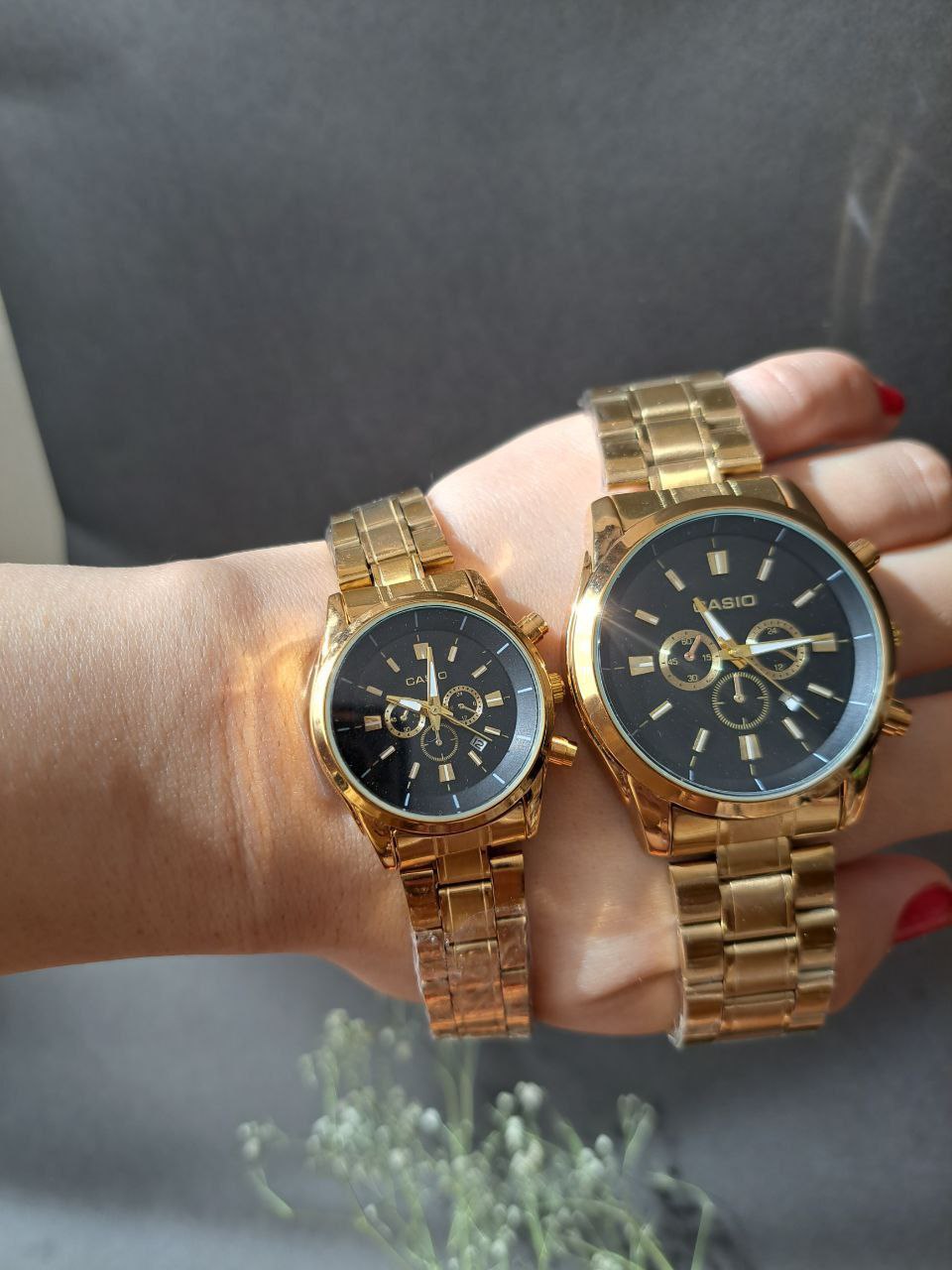 ست ساعت رنگ ثابت زنانه و مردانه کاسیو طرح سه موتوره ارسال رایگان گارانتی دارد ضمانت
