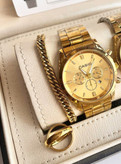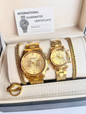ست ساعت رنگ ثابت طلایی زنانه و مردانه کاسیو طرح سه موتوره دستبند استیل حلقه استیل رینگ ارسال رایگان گارانتی دارد ضمانت