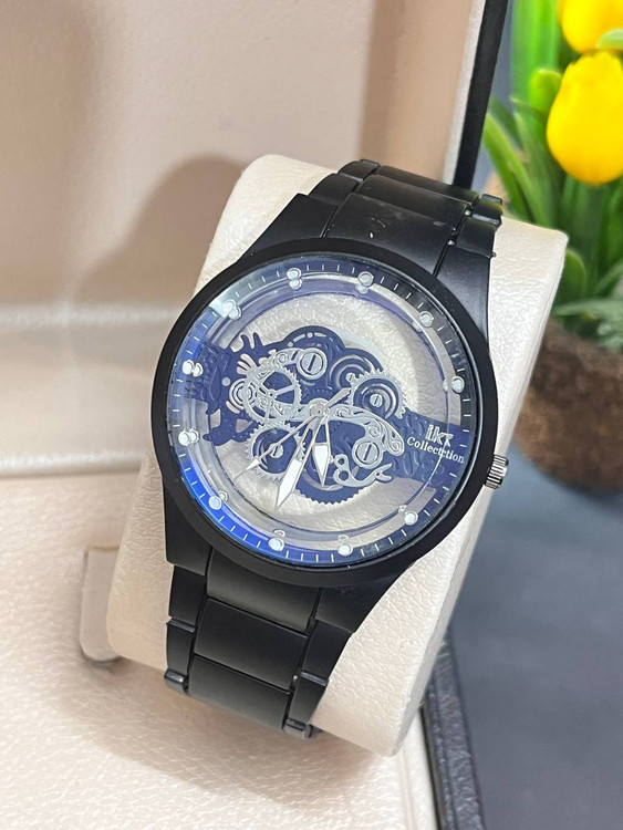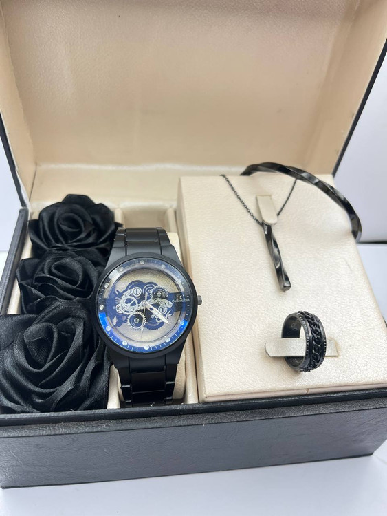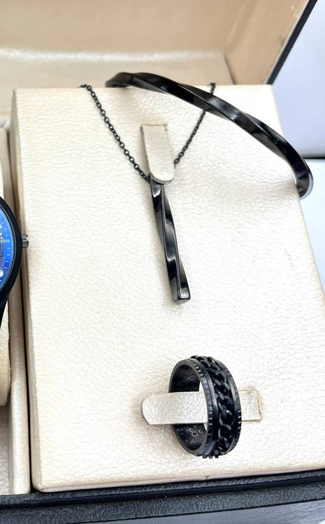 ست مردانه ساعت دستبند گردنبند حلقه استیل مشکی مدل شیک