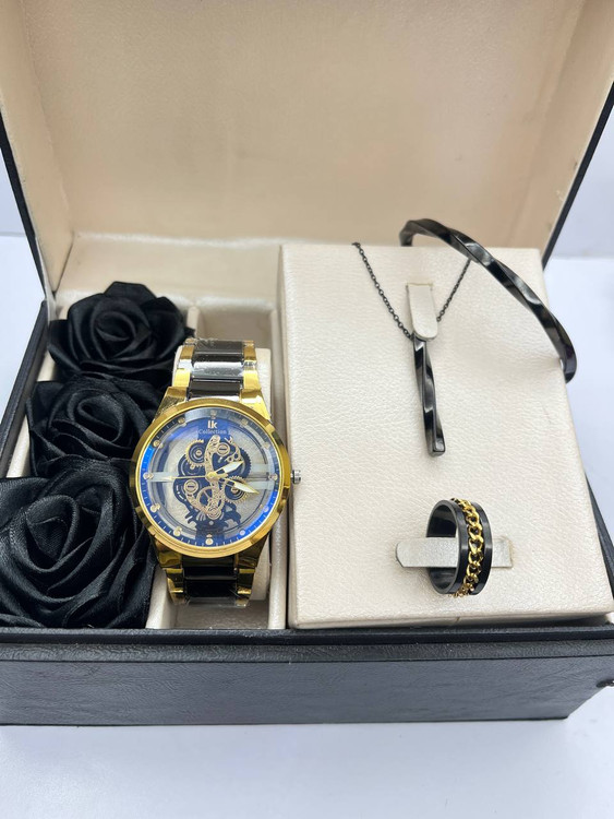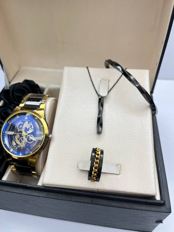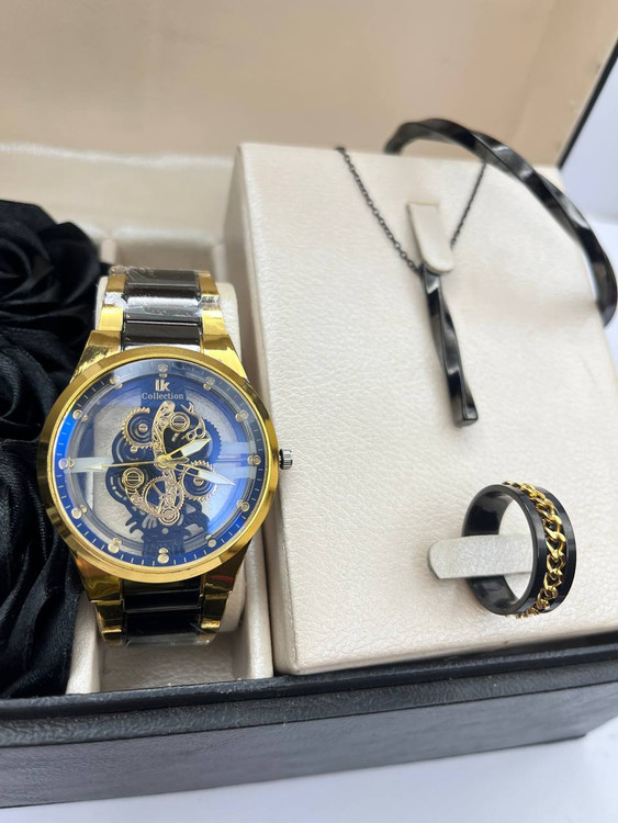 ست مردانه ساعت دستبند گردنبند حلقه استیل مدل شیک