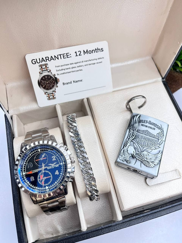 ست ساعت مردانه نقره ای فندک دستبند حلقه ست پسرانه کادو روزمرد روز معلم ارسال رایگان