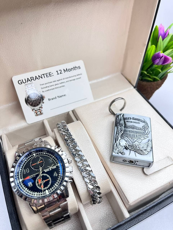 ست ساعت مردانه نقره ای فندک دستبند حلقه ست پسرانه کادو روزمرد هدیه آقایان