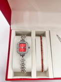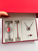 باکس ساعت ست زنانه جواهری نگین قرمز انگشتر نگین دار ست گردنبند شمشیر و قلب زنانه و مردانه ارسال رایگان