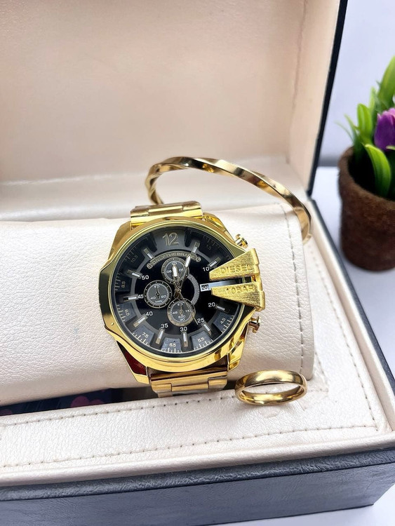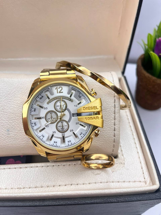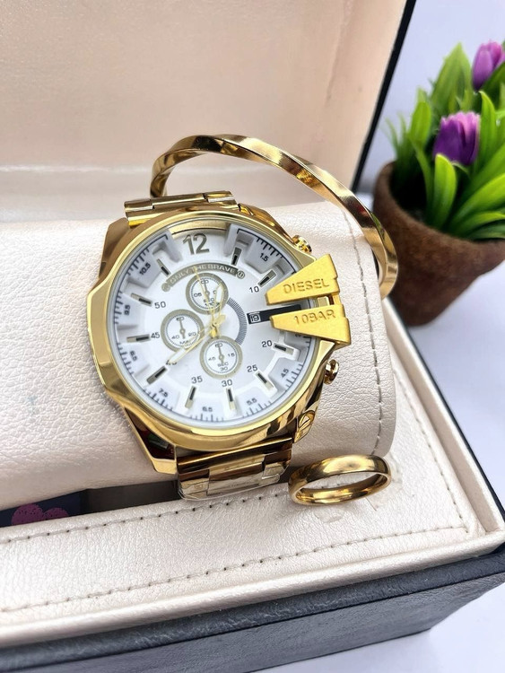 ست ساعت دیزل مشابه اصلی طلایی ست گردنبند دستبند استیل پیچ رنگ ثابت ارسال رایگان