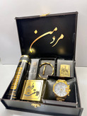 باکس هدیه شیک و لاکچری مردانه خرید کادوی لوکس مشکی طلایی ساعت دیزل شاخدارگردنبند خوشگل