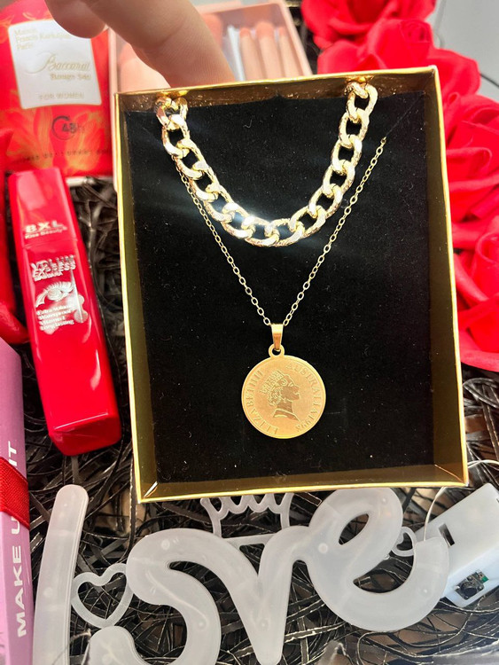 گردنبند ۲ لاین سکه الیزابت اصلی . رنگ ثابت