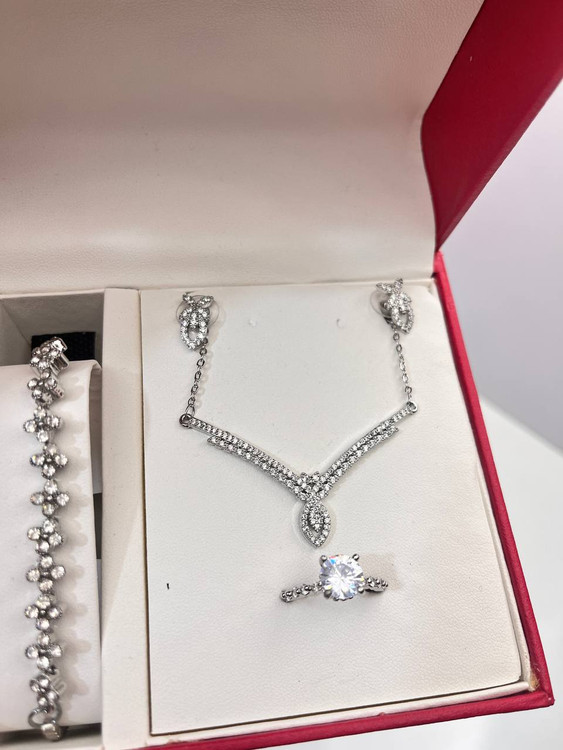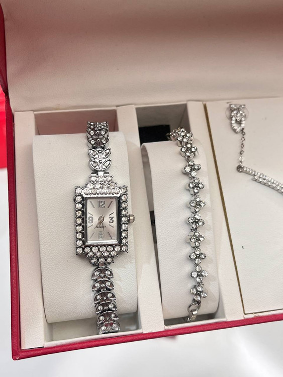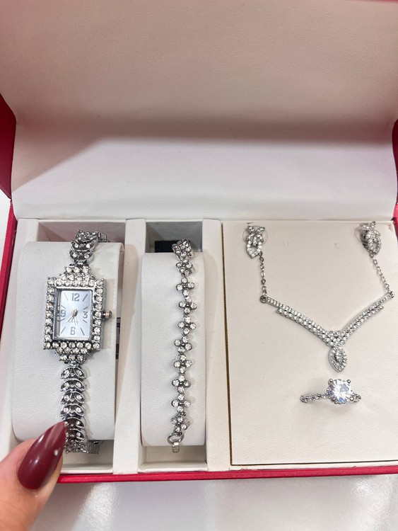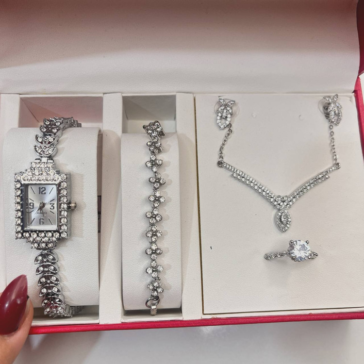 پک اکسسوری ساعت جواهری ساعت مچی زنانه نیم ست نگین دار کادوی تولد خاص و جذاب ترب پی
