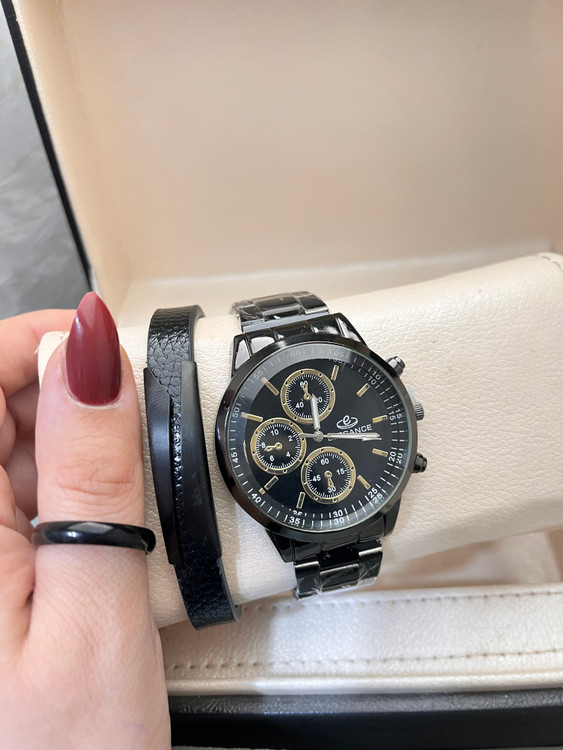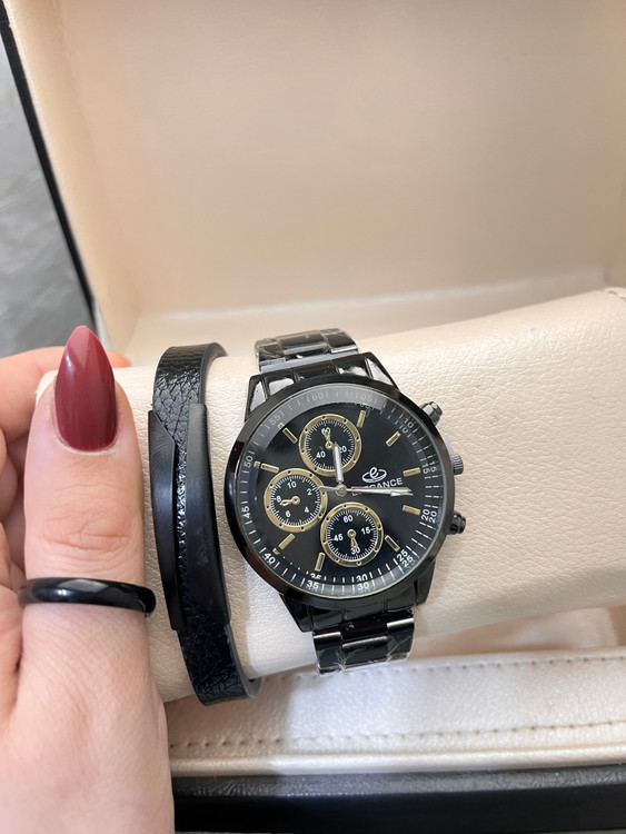 پک هدیه مردانه اسپرت پرفروش ساعت مشکی حلقه استیل شیک و کادو هدیه هدیه ولنتاین کادوی شیک آقایان پسرانه