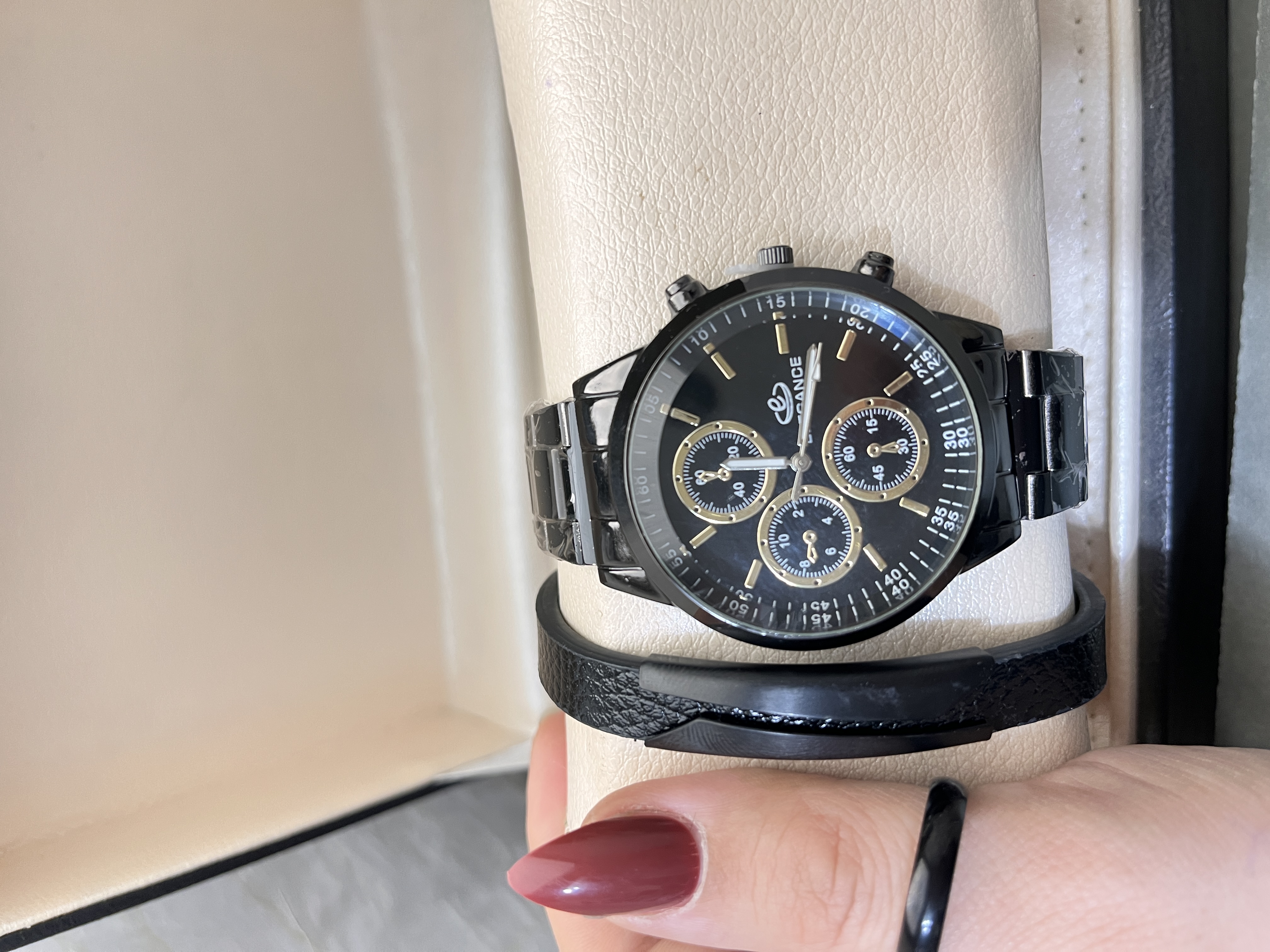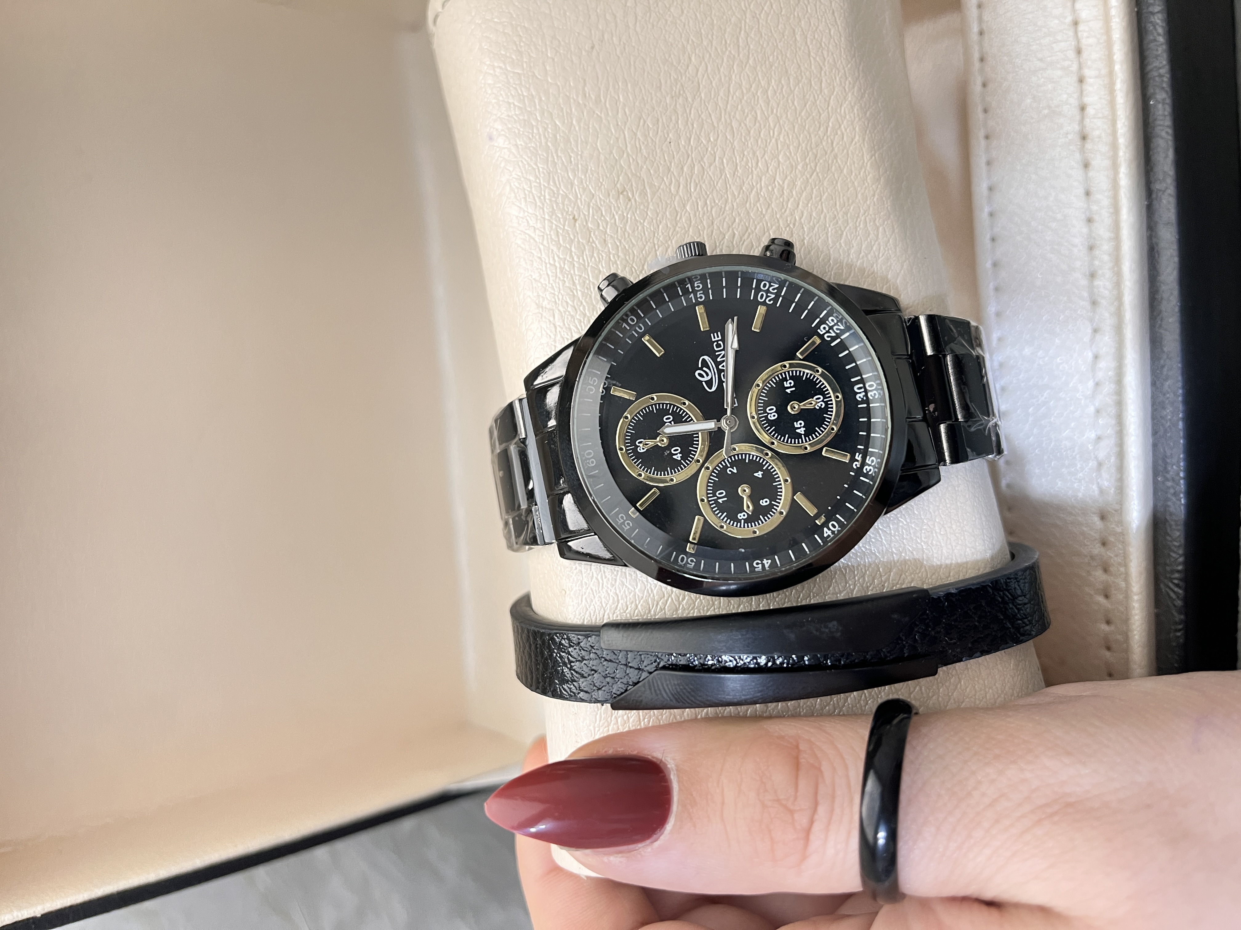 پک هدیه مردانه اسپرت پرفروش ساعت مشکی حلقه استیل شیک و کادو هدیه هدیه ولنتاین کادوی شیک آقایان پسرانه