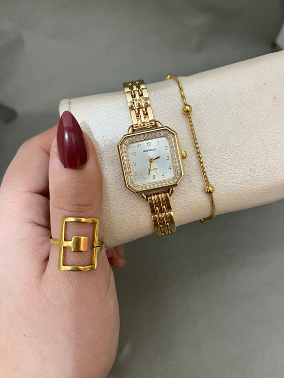 ست ساعت زنانه طلایی نگین دار ظریف و شیک رنگ‌ثابت قسطی ترب با کیفیت