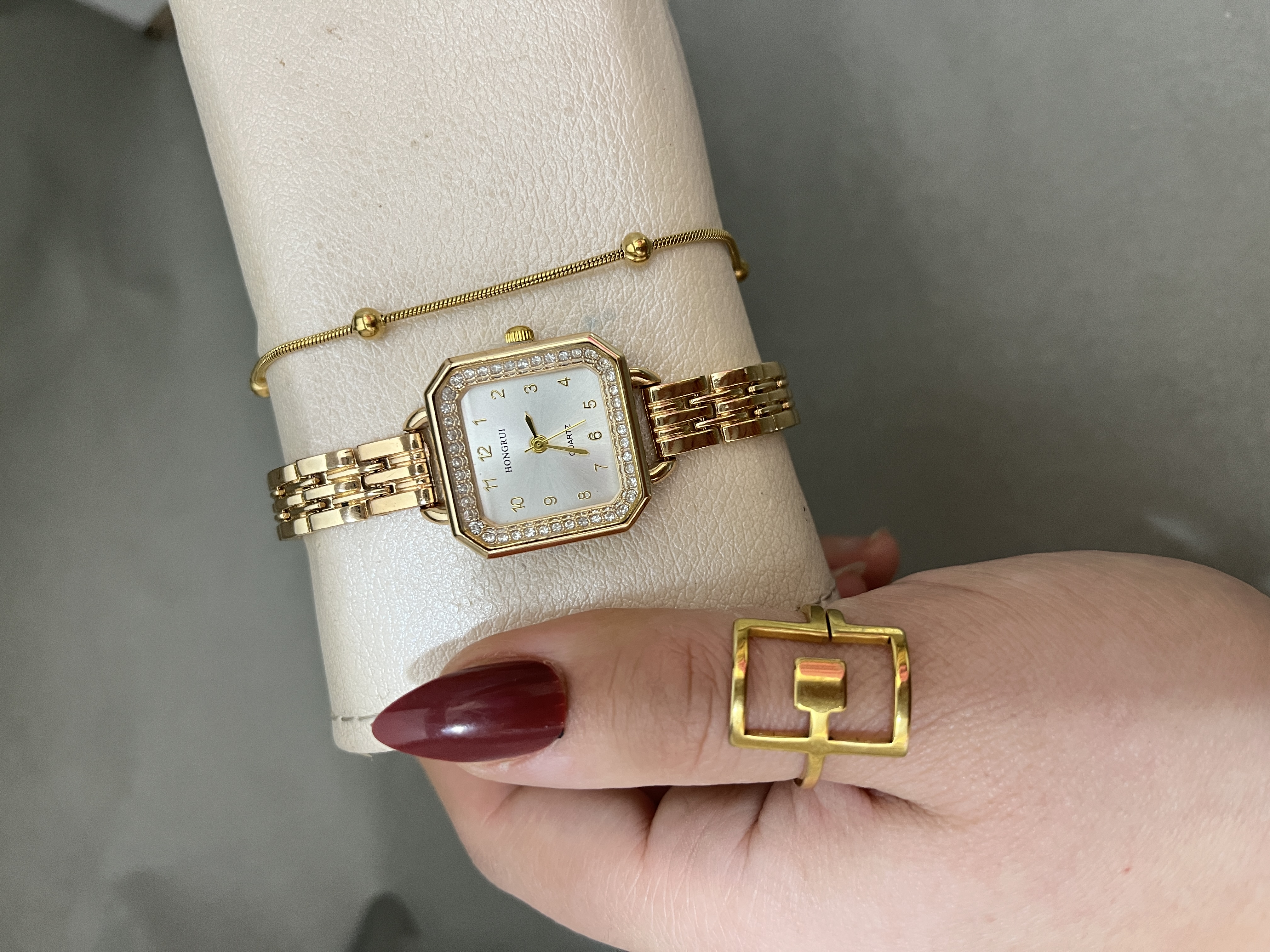 ست ساعت زنانه طلایی نگین دار ظریف و شیک رنگ‌ثابت قسطی ترب با کیفیت