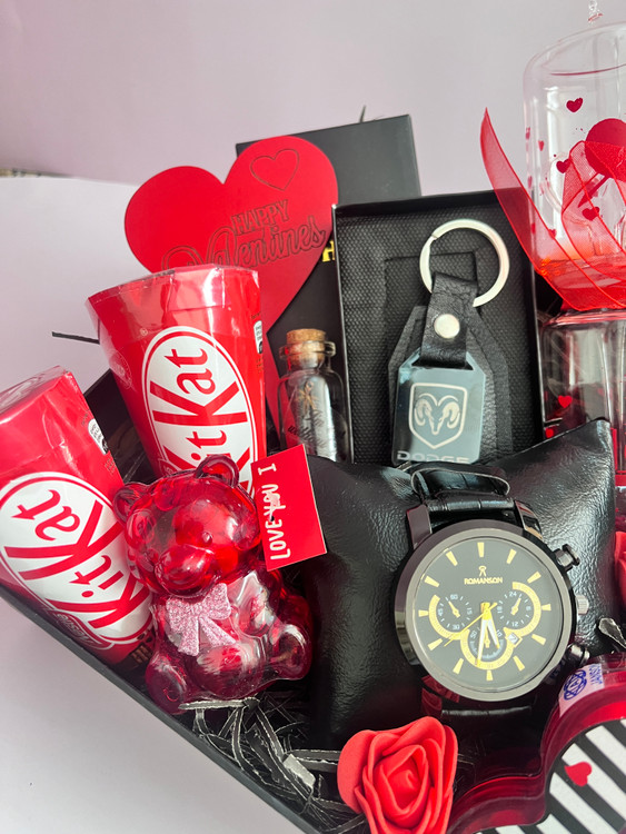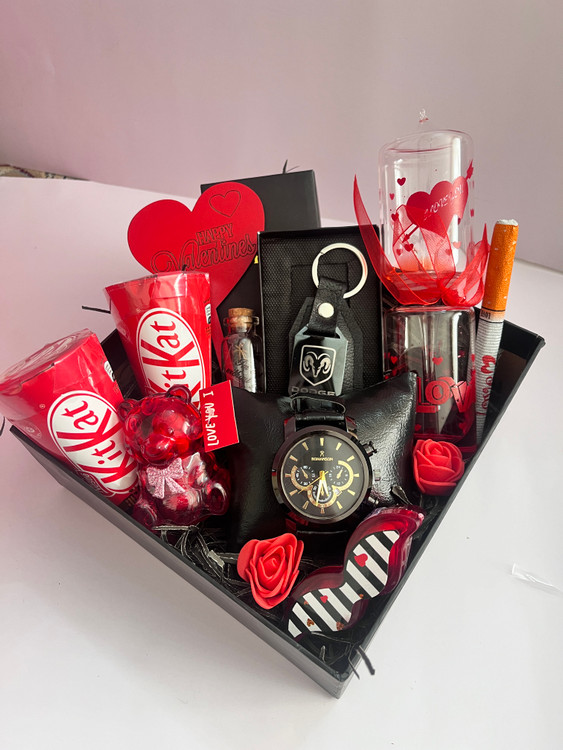 باکس هدیه ولنتاین پسرانه شکلات ولنتاین ساعت مردانه اسپرت‌