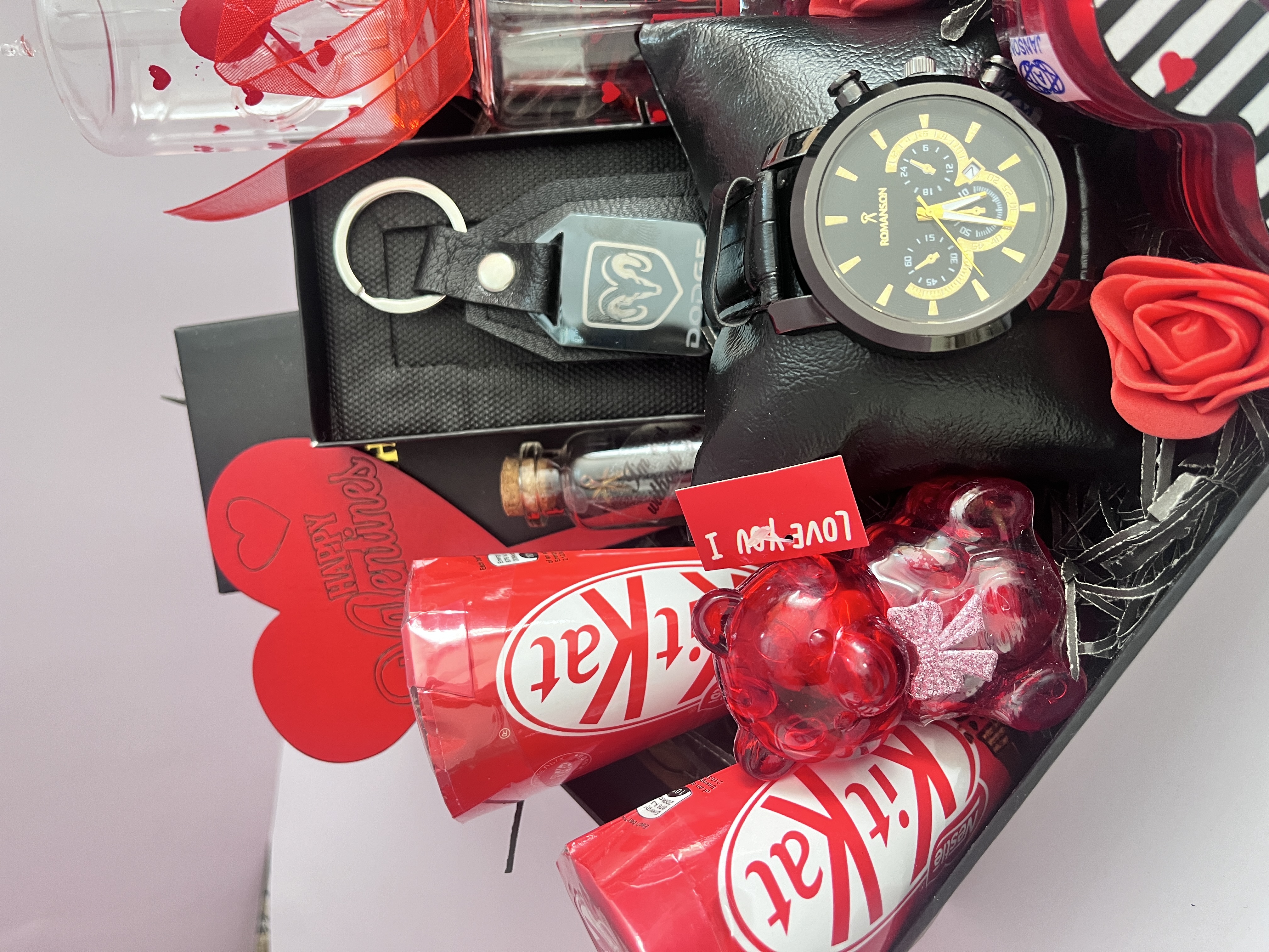 باکس هدیه ولنتاین پسرانه شکلات ولنتاین ساعت مردانه اسپرت‌