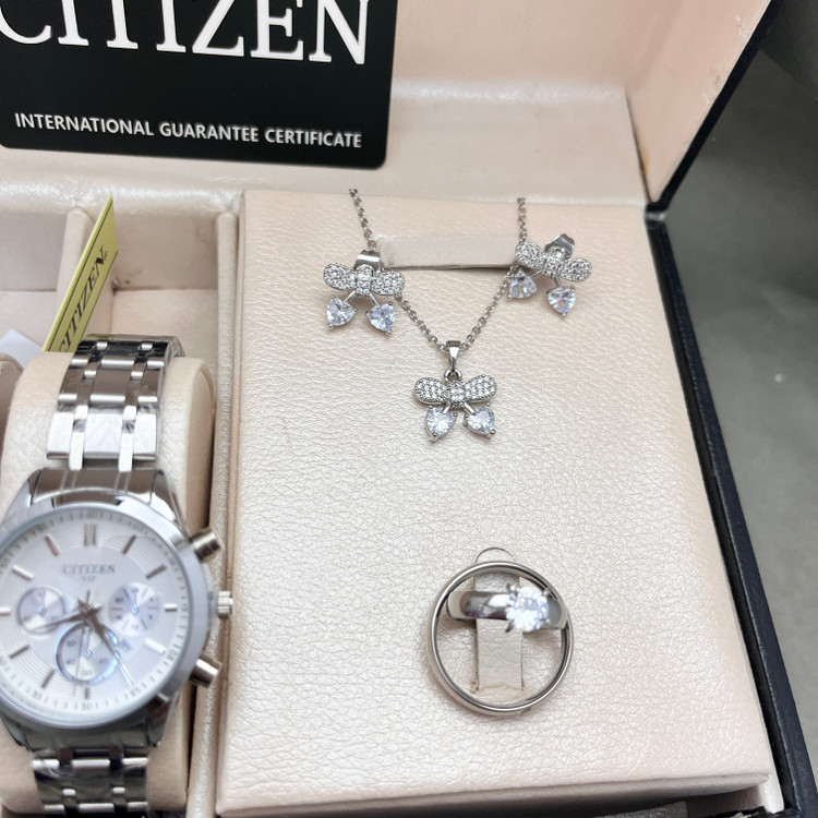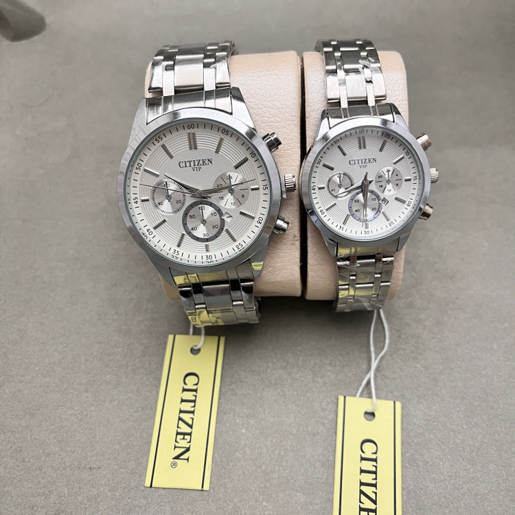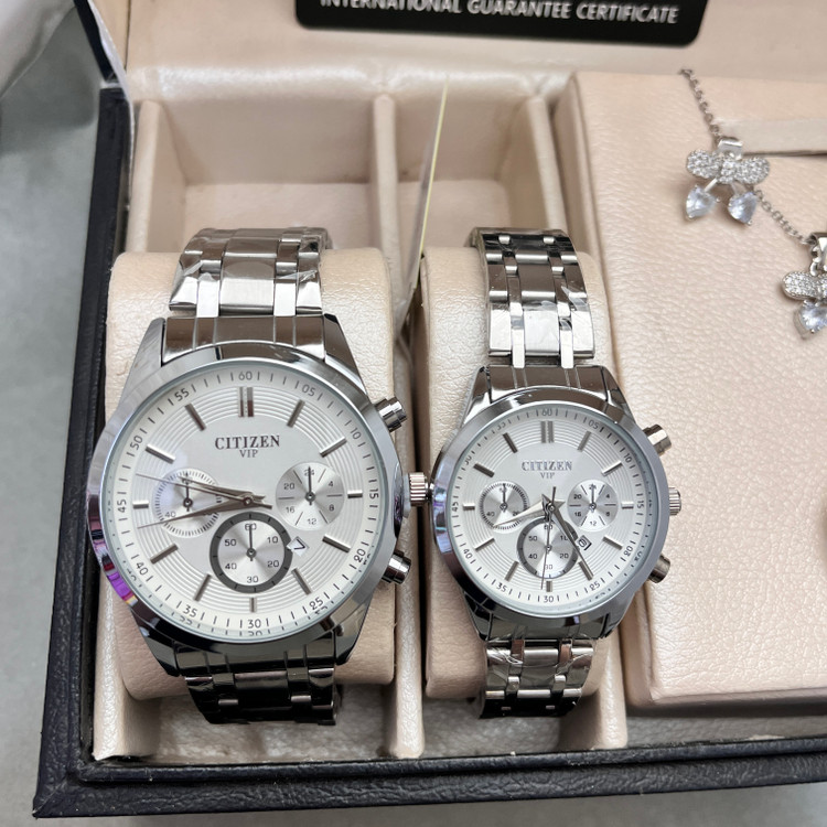 ست ساعت سیتیزن vip ساعت زنانه و مردانه شیک تمام نقره ای نیم ست جواهری با کیفیت قسطی ساعت شیک نقره ای