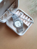 ساعت مجلسی فول نگین نقره ای زنانه همراه دستبند تنیسی انگشتر جواهری ارسال رایگان کادو هدیه برند امپاور